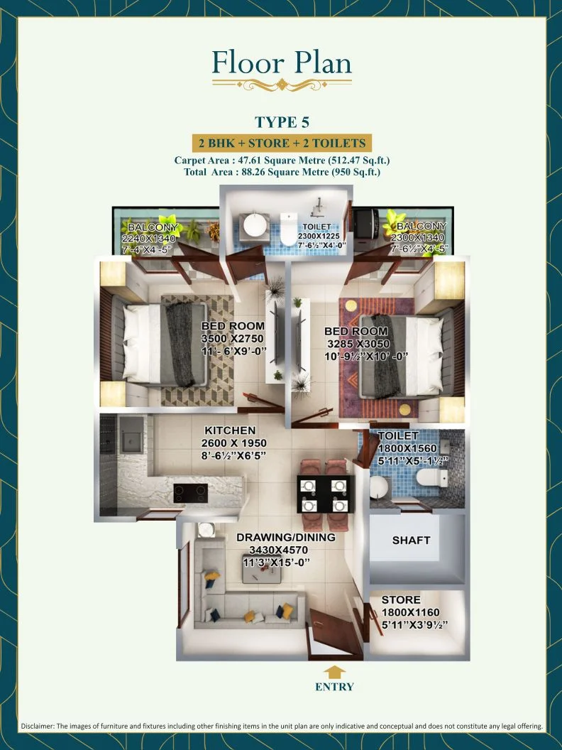 2BHK + STORE + 2 TOILET