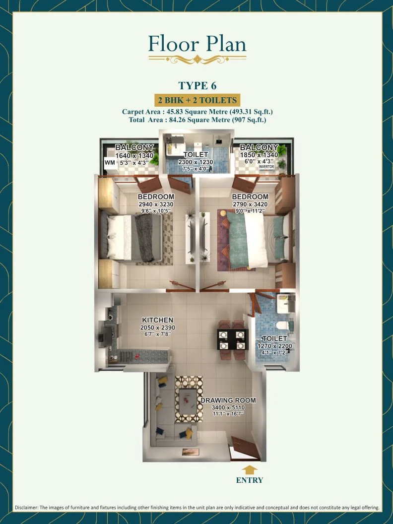 2BHK + 2 TOILETS