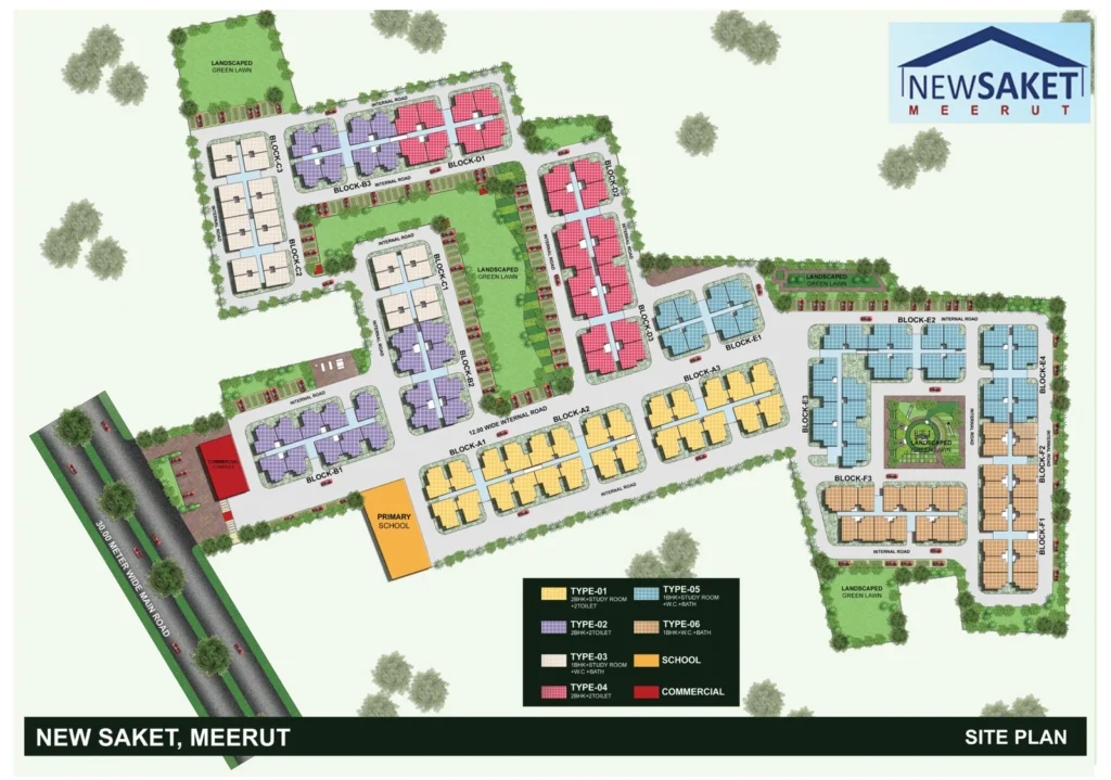 Welcome to New Saket, one of the finest housing projects under the Pradhan Mantri Awas Yojna, 5 km from Saket, Meerut’s posh locality, with close proximity to the national capital Delhi. New Saket is a first-of-its kind affordable housing project in the heart of Meerut available at a pocket-friendly price range of Rs. 12.88 – 20.81 Lacs. It is a perfect mix of man-made structure and natural beauty spread. With Landcraft group’s years of delivering quality, trust and track record of numerous successful projects and Bansal Realty’s stamp of trust, respect and renowned historical lineage throughout Meerut region and beyond.