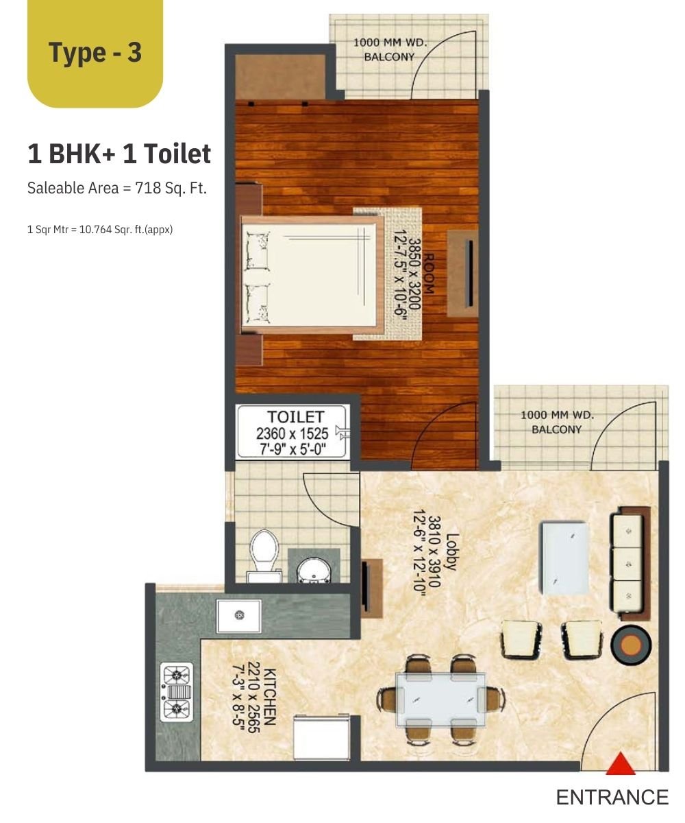 TYPE 3 ( 1 BHK + 1 TOILET )