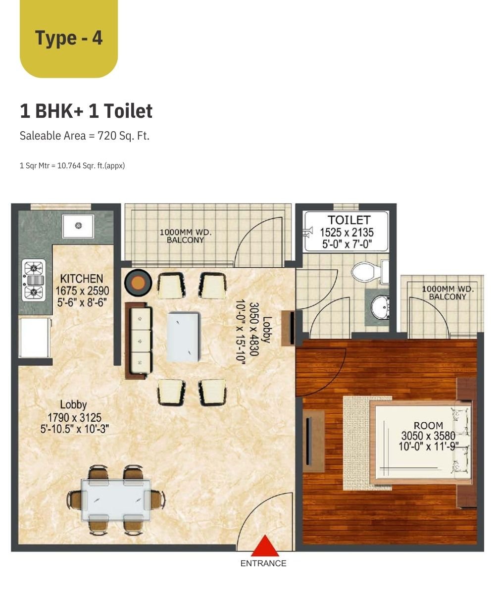 TYPE 4 ( 1 BHK + 1 TOILET )